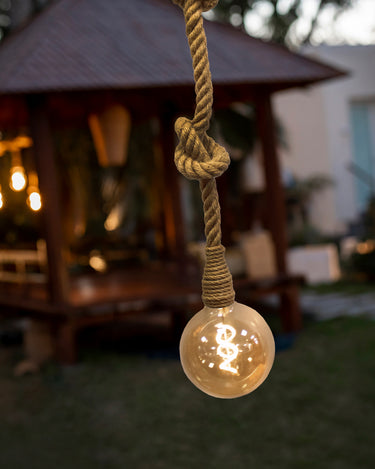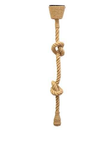 Die Pendelleuchte Simón mit Juteschnur besticht durch ihren Vintage-Stil. Sie verfügt über eine 1 m lange, mit Naturfaser ummantelte Schnur. Die Höhe lässt sich durch einfache Knoten regulieren.