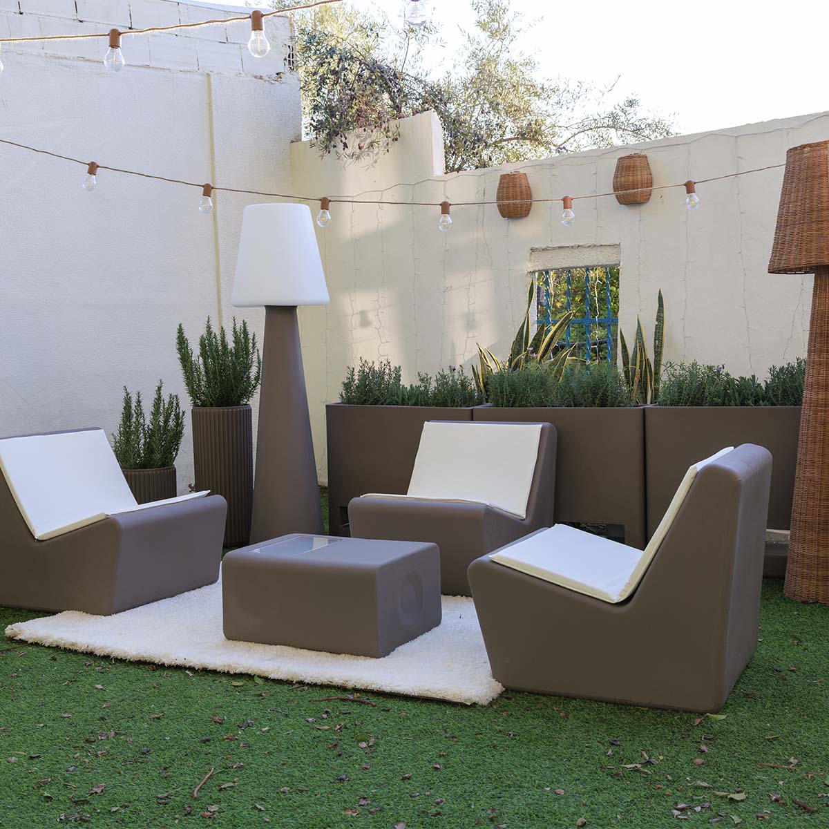 Jedes Newgarden-Produkt ist in Spanien inspiriert, hergestellt und gestaltet und nimmt ein bisschen Mittelmeer mit. Sie bestehen aus Polyethylen, wodurch sie extremen Temperaturen standhalten können, und daher ist ihre Dauer nicht unendlich, sondern fast unbegrenzt.
