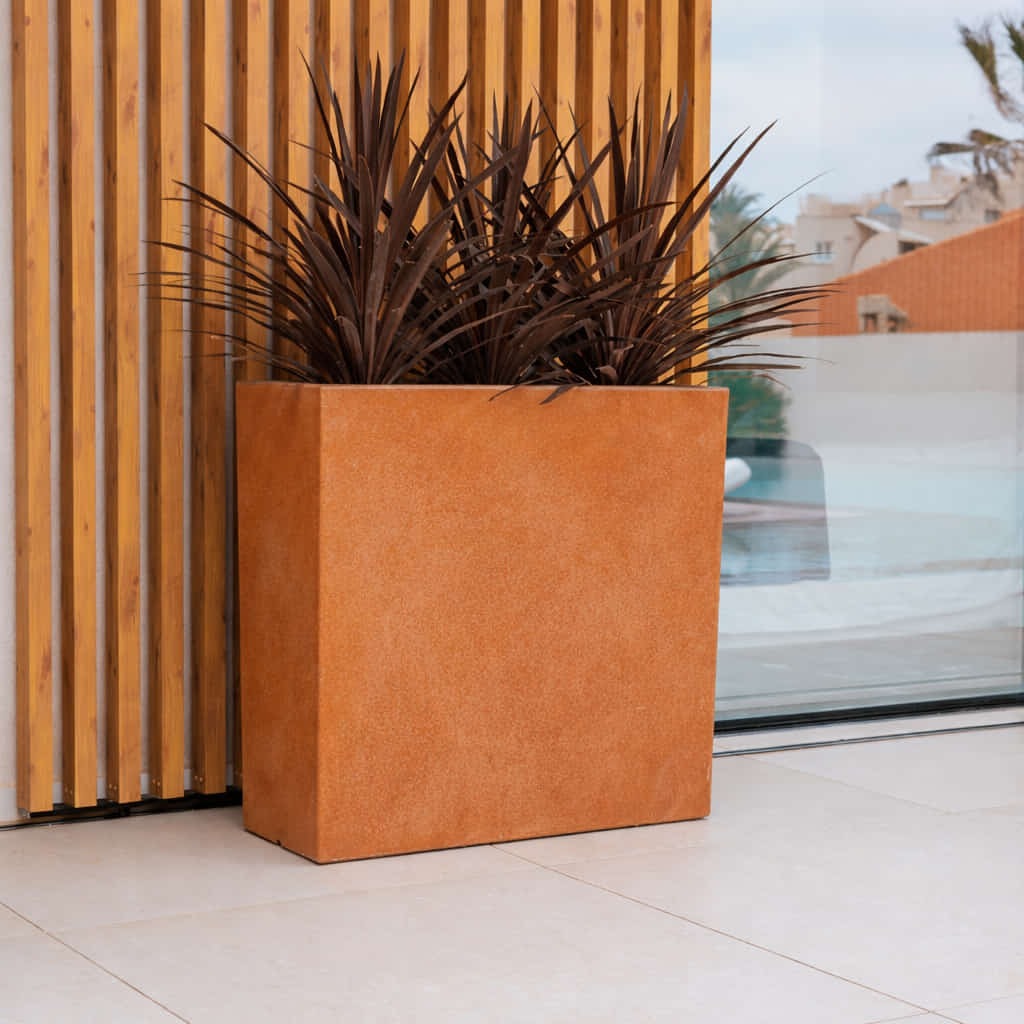 JUNCO 80 (80x32x80 cm) ist ein mittelhoher rechteckiger Pflanzer mit einer großen Pflanzfläche. Ideal, um neben einer geraden Wand zu platzieren und die Umgebung, das Restaurant, das Hotel, die Terrasse oder die Ruhebereiche zu differenzieren.